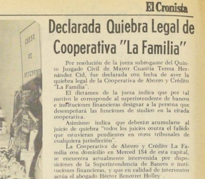 J.L. En 1976, con bombos y platillos, se creó la financiera La Familia, impulsada por dirigentes del gremialismo cercanos a
